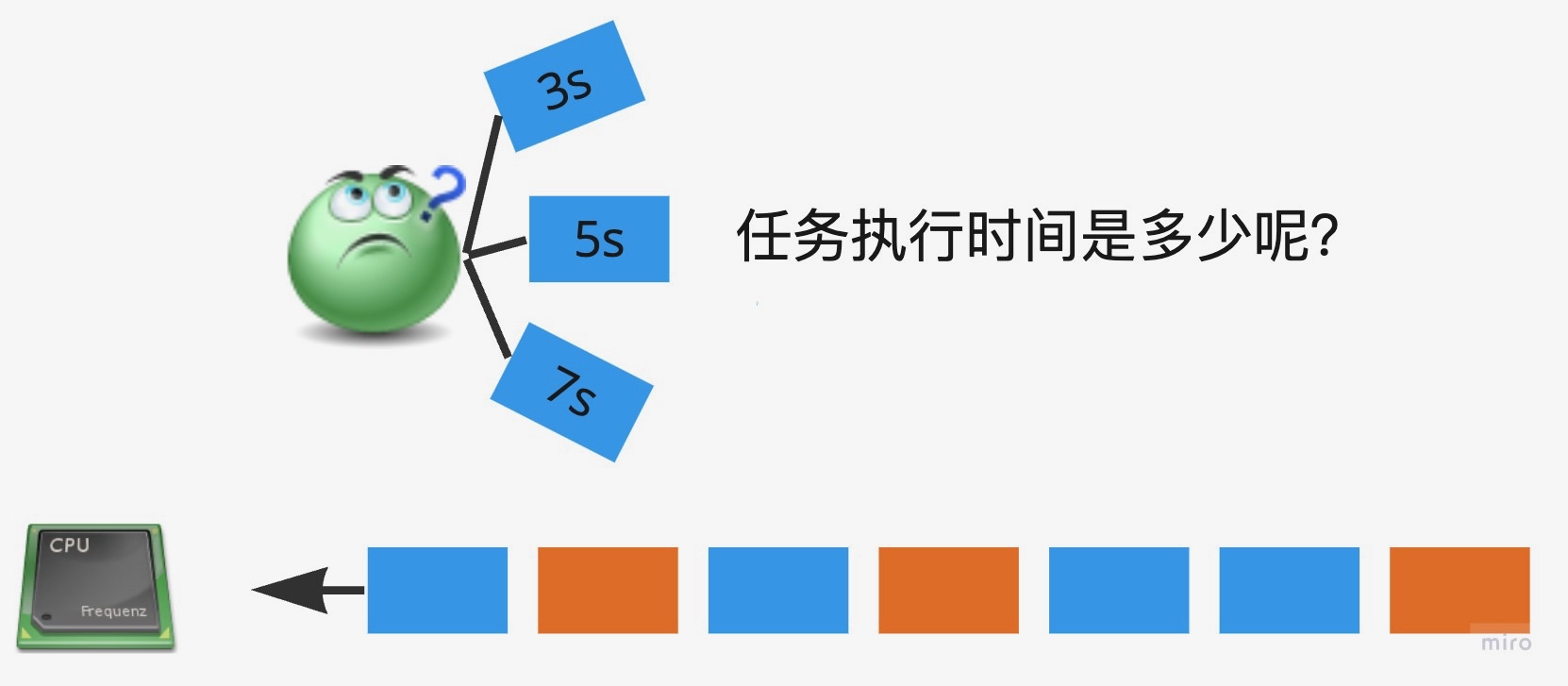 最短时间优先的策略很棒,但我们忘记了一个重要问题,在任务执行完之前,我们并不知道任务会执行多久!!!策略失效了!!!