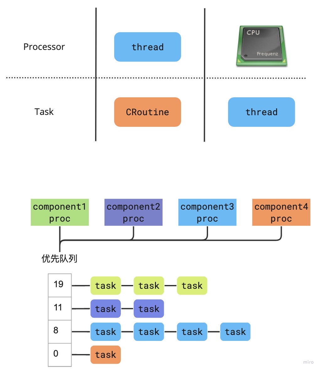 对应到GMP模型,Cyber的每个任务都被视为一个协程,协程在线程上运行,并且可以设置协程的优先级。协程通过一个多优先级队列来管理,每次从优先级最高的协程开始执行。