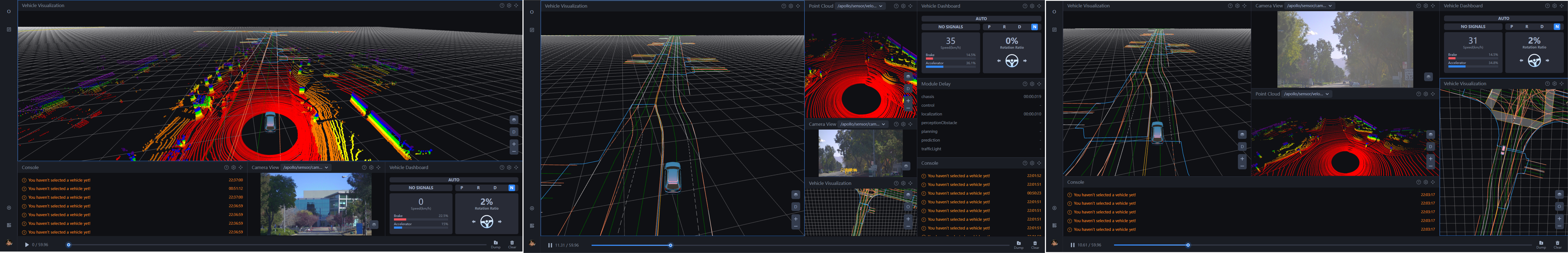 全新Dreamview+默认模式适合通用开发场景,具备所有模块与面板,开发者可以自主配置和调试,打造自己专属的开发流程。