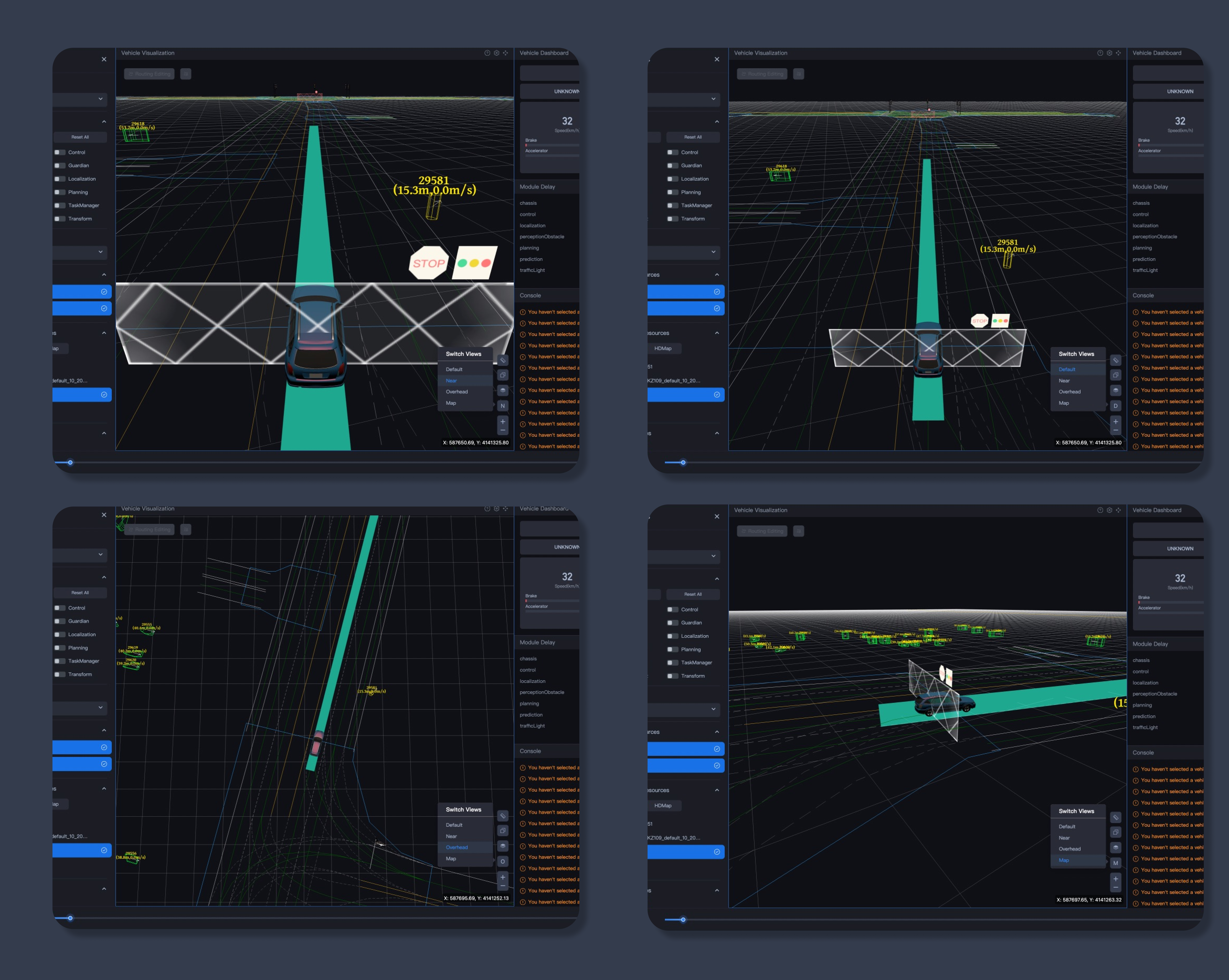 全新Dreamview+从感知、PnC等不同业务研发场景出发,根据不同场景的操作方式与开发流程,设计了默认模式、感知模式、PnC模式三种场景模式,开发者可以在三种模式之间随意切换,选择适应自身需求的模式进行自动驾驶开发,增强了场景针对性,同时极大提升了开发效率。以下是三种模式的介绍: